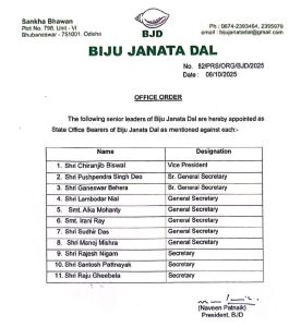 ବିଜେଡି ପ୍ରତି ନିଷ୍ଠା ଓ ଆନୁଗତ୍ୟକୁ ନବୀନ ଦେଲେ ପୁରସ୍କାର । ଚିରଞ୍ଜିବୀ ବିଶ୍ବାଳଙ୍କୁ ବିଜେଡିରେ ମିଳିଲା ବଡ଼ ଦାୟିତ୍ଵ । ଦଳର ସଭାପତି ନବୀନ ଚିରଞ୍ଜିବୀଙ୍କୁ ଦଳର ଉପସଭାପତିଭାବେ ଗୁରୁଦାୟିତ୍ଵ ପ୍ରଦାନ କରିଛନ୍ତି।