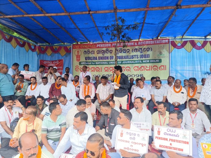 ପେନ୍ସନ୍, ପ୍ରୋଟେକ୍ସନ୍ ଓ ଆକ୍ରିଡ଼େସନ ଦାବିରେ ବିଧାନସଭା ସମ୍ମୁଖ ଲୋୟର ପିଏମ୍ଜିରେ ଓୟୁଜେ ପକ୍ଷରୁ ଗଣଧାରଣା ଦିଆଯାଇଛି ମୋହନ ସରକାର ବିରୋଧରେ । ଏଥିରେ ୩୦ଟି ଜିଲ୍ଲା ଶାଖାରୁ ପ୍ରାୟ ପାଞ୍ଚଶହରୁ ଊର୍ଦ୍ଧ୍ବ ସାମ୍ବାଦିକ ଯୋଗଦେଇ ଦାବି ସପକ୍ଷରେ ସ୍ଲୋଗାନ୍ ଦେଇଥିଲେ । ପ୍ରତିଶ୍ରୁତି ଦେଇ ବିଜେପି ସରକାର କିପରି ସାମ୍ବାଦିକଙ୍କ ଗୋଟିଏ ବି ଦାବି ପୂରଣ କରିନାହାନ୍ତି ତାହାକୁ ପ୍ରତିବାଦ ସଭାରେ ବଖାଣିଥିଲେ ଓଡ଼ିଶାର ବିଭିନ୍ନ କୋଣରୁ ଆସିଥିବା ସାମ୍ବାଦିକମାନେ। ବିରୋଧୀ ବିଜେଡ଼ି ଓ କଂଗ୍ରେସର ବିଧାୟକମାନେ ସମାବେଶରେ ଯୋଗଦେଇ ସାମ୍ବାଦିକଙ୍କ ଦାବି ସପକ୍ଷରେ ମତ ରଖିଥିଲେ। ବିଜେଡି ବିଧାୟକ ଅରୁଣ ସାହୁ କହିଥିଲେ ଯେ ସାମ୍ବାଦିକଙ୍କ ଦାବିକୁ ଆମ ଦଳ ସମର୍ଥନ କରୁଛି। ରାଜ୍ୟର ଆଜି ଏମିତି ପରିସ୍ଥିତି ସୃଷ୍ଟି ହୋଇଛି ଯେଉଁ ଧାରଣା ସ୍ଥଳରେ ସାମ୍ବାଦିକମାନେ ଅନ୍ୟ ସଙ୍ଗଠନ ସମସ୍ୟାକୁ ସରକାରଙ୍କ ପାଖରେ ପହଞ୍ଚାଇବା କଥା ସେମାନେ ଆଜି ଆନ୍ଦୋଳନ କରୁଛନ୍ତି । ସେହିପରି କଂଗ୍ରେସ ବିଧାୟକ ତାରା ପ୍ରସାଦ ବାହିନୀପତି କହିଥିଲେ ସରକାର ତୁରନ୍ତ ସାମ୍ବାଦିକଙ୍କ ଦାବିକୁ ପୂରଣ କରନ୍ତୁ। କଂଗ୍ରେସ ଦଳ ସବୁବେଳେ ସାମ୍ବାଦିକଙ୍କ ଦାବି ସହ ଅଛି ଓ ରହିବ। ଓୟୁଜେର ସଭାପତିଙ୍କ ଅଧ୍ଯକ୍ଷତାରେ ଅନୁଷ୍ଠିତ ଏହି ଗଣସମାବେଶରେ ବରିଷ୍ଠ କଂଗ୍ରେସ ନେତା, ବିଧାୟକ ତାରାପ୍ରସାଦ ବାହିନୀପତି, ବିଜେଡ଼ି ବିଧାୟକ ଅରୁଣ ସାହୁ, ଅନନ୍ତ ନାରାୟଣ ଜେନା, ସଞ୍ଜୀବ ମଲ୍ଲିକ, ରୋମାଞ୍ଚ ରଞ୍ଜନ ବିଶ୍ୱାଳ, ଶାରଦା ଜେନା, ପ୍ରଦୀପ ସାହୁ, ମାଧବ ଧଡ଼ା ଓ ରୂପେଶ ପାଣିଗ୍ରାହୀ ପ୍ରମୁଖ ଉଦ୍ବୋଧନ ଦେଇ ଓୟୁଜେ ପକ୍ଷରୁ ଉପସ୍ଥାପିତ ଦାବି ଯଥାର୍ଥ ଓ ଏହାକୁ ବିଧାନସଭାରେ ପ୍ରଭାବୀ ଢଙ୍ଗରେ ଉତ୍ଥାପନ କରାଯିବା ବୋଲି ପ୍ରତିଶ୍ରୁତି ଦେଇଥିଲେ।ସେହିପରି ବରିଷ୍ଠ ସାମ୍ବାଦିକ ରବି ଦାସ, ଓୟୁଜେ ଉପସଭାପତି ରାଜେଶ ପଟ୍ଟନାୟକ, ଜାତୀୟ କାର୍ଯ୍ୟକାରିଣୀ ସଦସ୍ୟ କିଶାନ ରାଉତ, ପ୍ରମୋଦ ସାମନ୍ତରାୟ, ସମ୍ପାଦକ ପ୍ରସନ୍ନ ପାଇକରାୟ, କୋଷାଧ୍ୟକ୍ଷ ଅମୂଲ୍ୟ ସ୍ୱାଇଁ, ସଂଯୋଜକ ସନ୍ତୋଷ ସିଂଦେଓ, ଦେବପ୍ରସାଦ ଦାସ, ବଦ୍ରିନାରାୟଣ ମିଶ୍ର, ଆଦିତ୍ୟ ମେକାପ, ରୂପେଶ ସାହୁ ଓ ରାମନାରାୟଣ ଶତପଥୀ ପ୍ରମୁଖ ବକ୍ତବ୍ୟ ରଖି ସାମ୍ବାଦିକଙ୍କୁ ଦିଆଯାଇଥିବା ପ୍ରତିଶ୍ରୁତି ତୁରନ୍ତ ପାଳନ କରାଯାଉ ବୋଲି ଦାବି କରିଥିଲେ। ଶେଷରେ ସଭାପତି ଶ୍ରୀ ମହାନ୍ତି ଗଣଧାରଣାର ଏହିଭଳି ବ୍ୟାପକ ସଫଳତା ପାଇଁ ସମସ୍ତଙ୍କୁ ଧନ୍ୟବାଦ ଦେଇଥିଲେ। ଏହାପରେ ଓୟୁଜେର ଏକ ପ୍ରତନିଧି ଦଳ ମୁଖ୍ୟମନ୍ତ୍ରୀଙ୍କୁ ଲୋକସେବା ଭବନରେ ଭେଟି ଦାବିପତ୍ର ଦେଇଥିଲେ। ମୁଖ୍ୟମନ୍ତ୍ରୀ ଦାବି ପ୍ରତି ଅବଗତ ଥିବା କହିଥିବା ଓୟୁଜେ ପ୍ରେସ ବାର୍ତ୍ତା ରେ ଜଣାଇଛି।